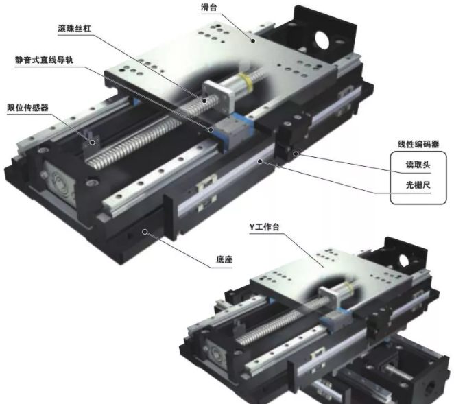 彩运网cy09909滑台、直线导轨、滚珠丝杆、限位传感器、防反转装置等。
