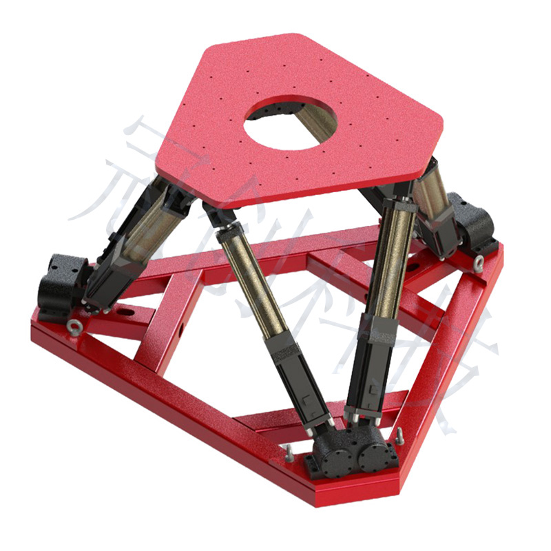六只电动缸支承,运动平台与电动缸采用六个虎克铰连接,